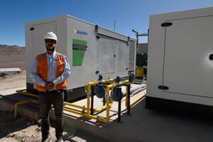 “Con el sistema energético de Abastible pasamos a ser más autónomos porque el concepto es que la planta llegue al mineral y no el mineral hacia la planta por necesidades de energÃa o agua. Queremos generar distritos económicos pequeños que permitan ir creciendo de a poco y reduzcan su nivel de impacto ambientalâ€, señala Jorge Orellana, Geólogo Residente de Tornasol junto al proyecto de generación eléctrica hÃbrido fotovoltaico – gas licuado en Minera Tornasol.