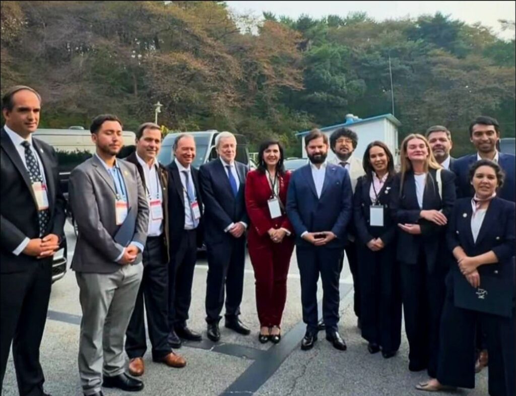 - Delegación de Energías Limpias, que estuvo compuesta por Rebeca Poleo, presidenta H2 Chile; Ana Lía Rojas; directora ejecutiva de Acera; Karla Flores, directora de InvestChile; Catalina Pérez, agregada de Inversiones en Asia y Lucas Pavez SS de la Embajada de Chile en Corea.
