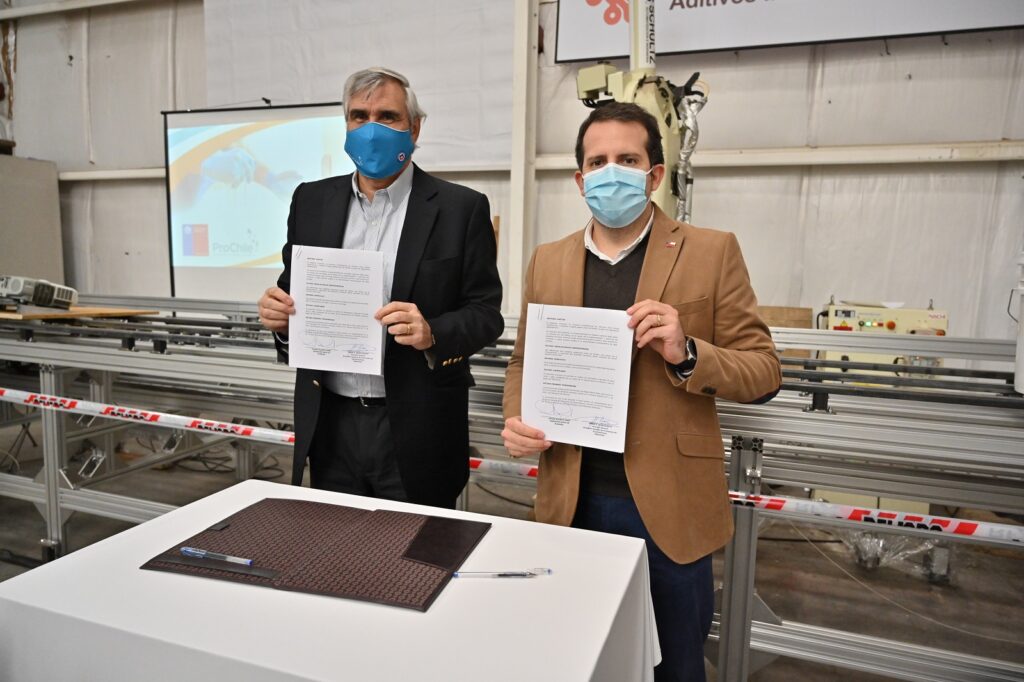Con el objetivo de fortalecer la promoción internacional de empresas chilenas que están comercializando productos asociados a usos alternativos del cobre, el subsecretario de MinerÃa, Edgar Blanco, y el director general de ProChile, Jorge O’Ryan, firmaron un acuerdo entre ambas instituciones en Industrial Nano, la empresa que creó un producto quÃmico con nanotecnologÃa que elimina el virus del coronavirus en segundos y que mantiene sus propiedades desde una semana hasta un mes.