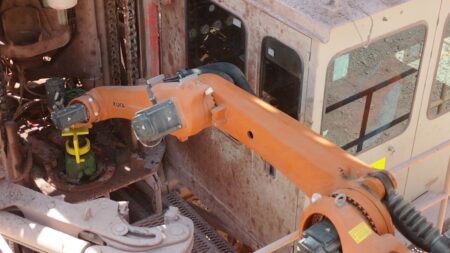 El brazo robótico cambiador de triconos que ofrece la empresa Triconos Mineros, se traduce en mayor seguridad y eficiencia del proceso.