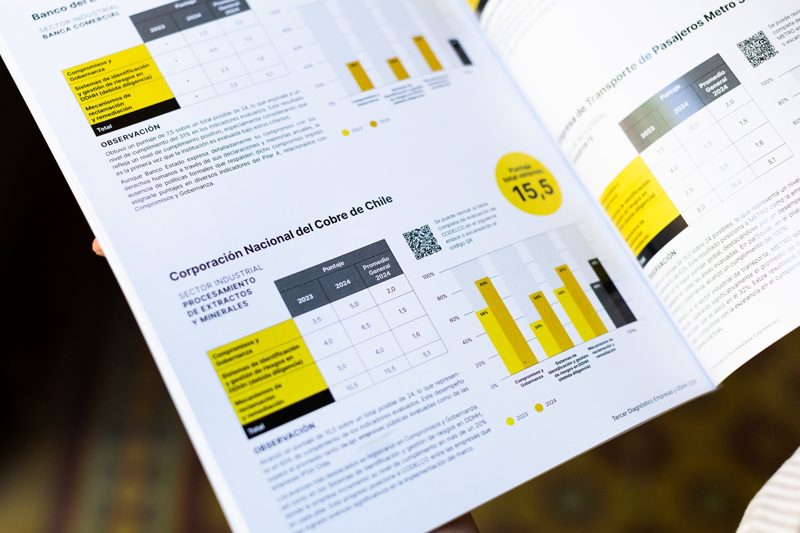 La medición, desarrollada por el Programa de Sostenibilidad Corporativa de la Pontificia Universidad Católica (PUC) y la Organización Internacional del Trabajo (OIT), evalúa el cumplimiento de los Principios Rectores sobre Empresas y Derechos Humanos de Naciones Unidas en las compañÃas chilenas, considerando polÃticas, sistemas de gestión y mecanismos de remediación.