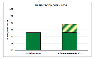 Se han observado resultados interesantes por medio del uso de los productos de especialidad, como el ejemplo a continuación donde se aprecia un aumento de recuperación de cobre total al procesar mineral de cobre por flotación con dosificación de uno de los productos SULFOS:
