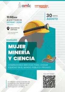 El foco del seminario, organizado por el Advanced Mining Technology Center con el apoyo de Compromiso Minero, será un panel de conversación sobre oportunidades e inclusión con destacadas representantes del sector minero, del mundo académico y del Gobierno: Ana Raquel MartÃnez, seremi metropolitana del Ministerio de la Mujer y Equidad de Género; Marcela Munizaga, vicedecana de la Facultad de Ciencias FÃsicas y Matemáticas de la Universidad de Chile; Verónica Fincheira, gerenta del Consejo de Competencias Mineras (actualmente Alianza CCM-Eleva); Alejandra Wood, directora de Codelco y exdirectora ejecutiva de Cesco, y Nancy Pérez, Project Excellence Manager de Codelco y directora de Enami.