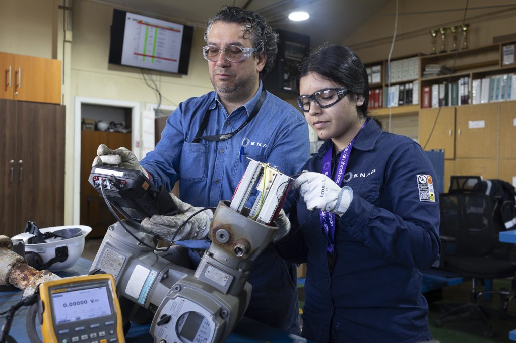 Se trata de Lourdes Vergara, estudiante del Liceo Industrial, quien realiza su práctica en el complejo industrial Cabo Negro, en el área de Mantenimiento de la línea de negocio Refinación y Comercialización (R&C). “Conocí Enap a través de charlas que realizaron en mi liceo. Siempre me interesó lo que contaban y las oportunidades que existen para las mujeres en este rubro. El ambiente laboral ha sido muy bueno y he aprendido mucho, es distinto a lo que se ve en clases”, comentó. En marzo, Vergara iniciará sus estudios de Técnico en Instrumentación y Automatización Industrial en la Universidad de Magallanes.