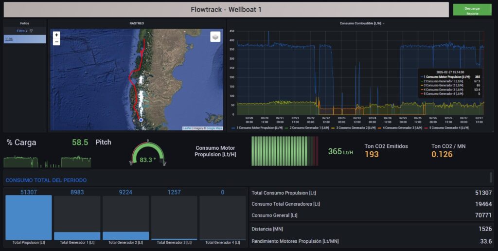 A diferencia de los métodos tradicionales —basados en inspecciones visuales o registros manuales— Flowtrack mide el consumo en cada punto crítico de la embarcación: motores principales, generadores, transferencias e ingresos de combustible.