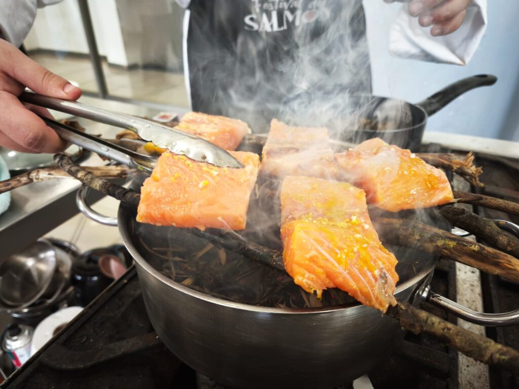 En paralelo, la competencia por el mejor ceviche de salmón convocó a reconocidos restaurantes locales, que desplegaron creatividad y técnica culinaria para reinterpretar el producto patagónico. Gustavo Sandoval, chef de Sanguchería Popular Pan con Chancho, subrayó la relevancia de estas instancias como vitrinas para la gastronomía regional. “Creo que es importantísimo poner en valor el salmón, resaltarlo y trabajarlo de distintas formas, mezclándolo con productos locales. Es necesario hacerlo y que esto se pueda mostrar afuera, porque la gente puede conocer nuevos productos y acercarse al salmón, que muchas veces no se consume tanto a nivel local”.