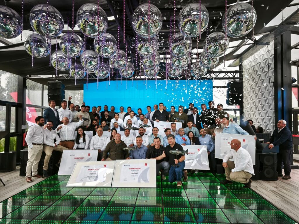 La jornada concluyó con una fotografía de todos los ganadores y asistentes, destacando el trabajo de los equipos productivos y la colaboración entre proveedores y productores para mejorar los resultados de la salmonicultura.