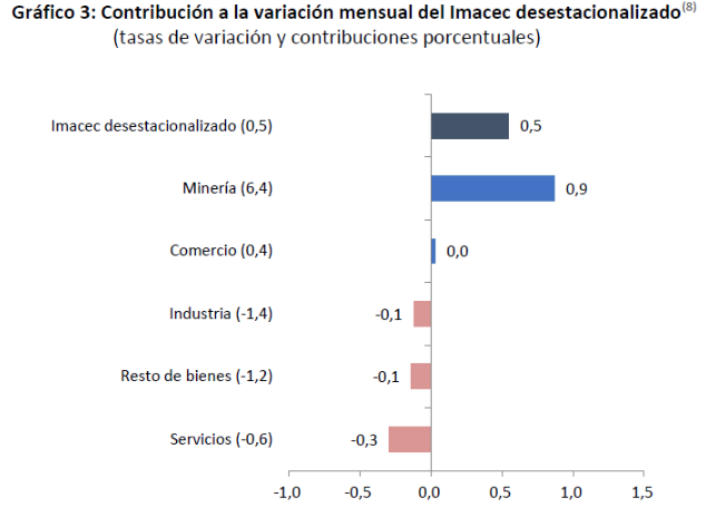 En tanto, el crecimiento del Imacec en términos desestacionalizados fue determinado por el desempeño de la minerÃa.