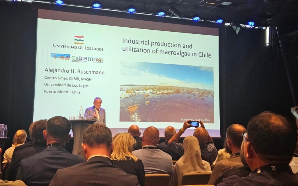 El investigador del centro i-mar, Dr. Alejandro Buschmann, tuvo la oportunidad de exponer sobre el desarrollo de la acuicultura de macroalgas en países como Noruega y Chile ante más de 400 asistentes. Junto a él también expuso la investigadora del SINTEF, Dra. Silje Forbord, organización de investigación independiente con presencia en 75 países.