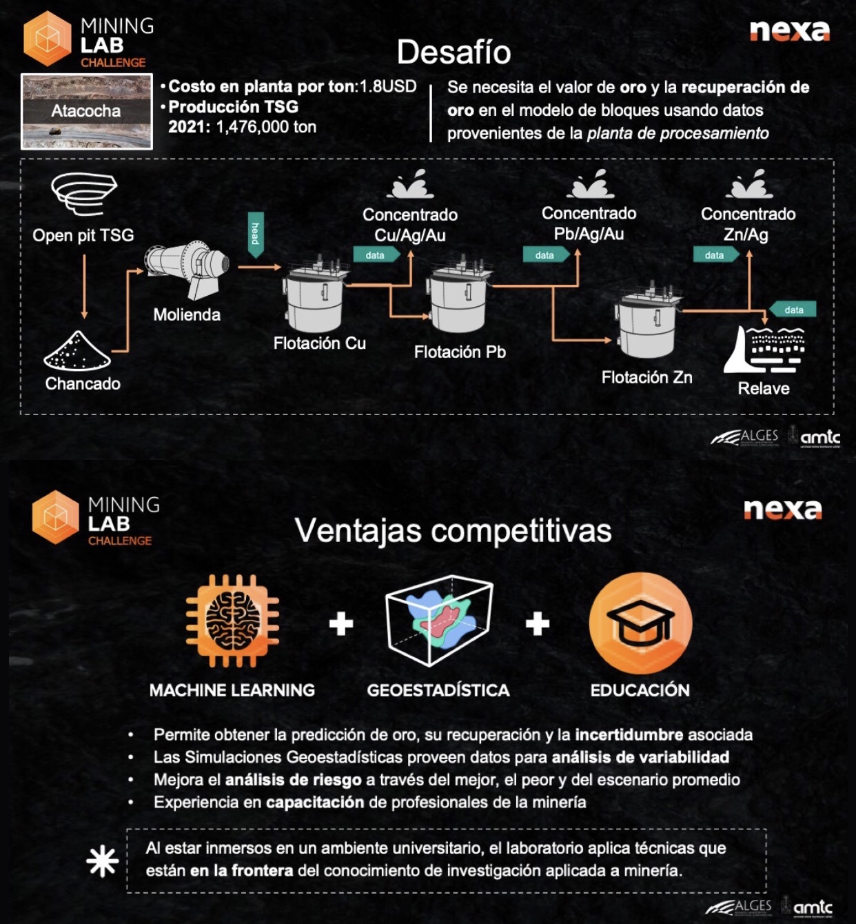 El Laboratorio de GeoestadÃstica y Supercómputo (ALGES), dependiente del Departamento de IngenierÃa de Minas y el Centro Avanzado de TecnologÃa para la MinerÃa (AMTC) de la Universidad de Chile, consiguieron un importante reconocimiento al desarrollar un proyecto con aplicación de técnicas de inteligencia artificial para la estimación de reservas de oro y su recuperación, en el evento de desafÃos tecnológicos Mining Lab Challenge, organizado durante el segundo semestre de 2020 por la empresa minera Nexa.