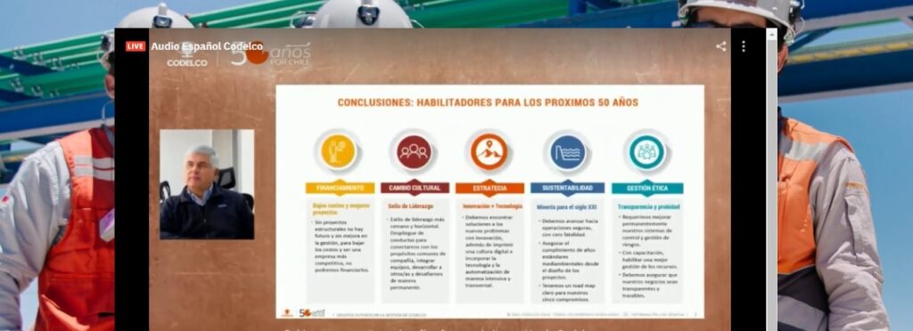 Dialogar en torno al proceso de transformación que está viviendo la minera estatal fue uno de los objetivos del webinar “Mejor gestión y desafÃos futuros, tras una década de la Ley de Gobierno Corporativo de Codelcoâ€, que se transmitió a través de las redes sociales de la Corporación.