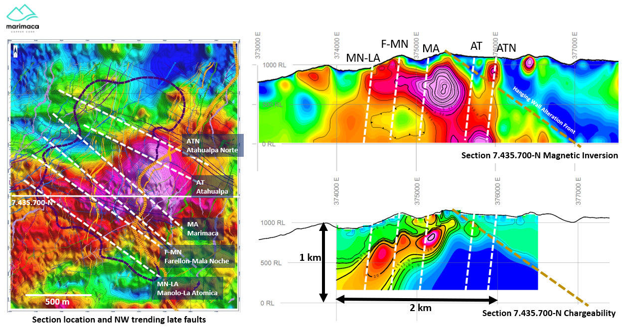 “Estamos muy satisfechos con los resultados del estudio IP, que muestran una anomalÃa de cargabilidad grande, lateralmente extensa, debajo del depósito de óxido de Marimaca. Esto nos proporciona datos valiosos para informar la orientación del pozo de perforación. El IP ha proporcionado información estructural adicional significativa, que incluye resaltar la importancia de las diversas estructuras de fallas transversales para la mineralización en Marimaca. Esto nos ha proporcionado varias áreas de enfoque para la perforación en el objetivo de sulfuros de Marimaca”.