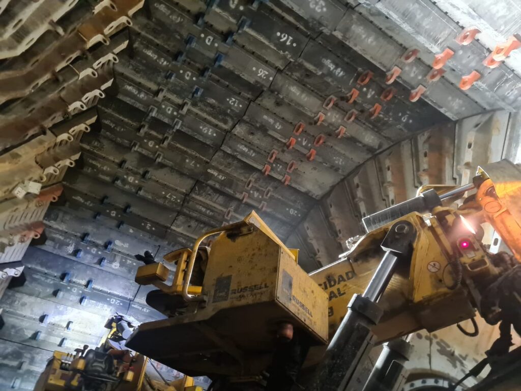 De esta manera, la máquina que manipula los revestimientos, que trabaja solo con el operador, instala las piezas al interior del equipo y los pernos se instalan por fuera del molino. “Lo bueno, en términos de seguridad, es que no se necesita ninguna persona al interior del molino para ayudar a que el revestimiento se pueda fijar al shell o a los cabezalesâ€, resalta Moreno.