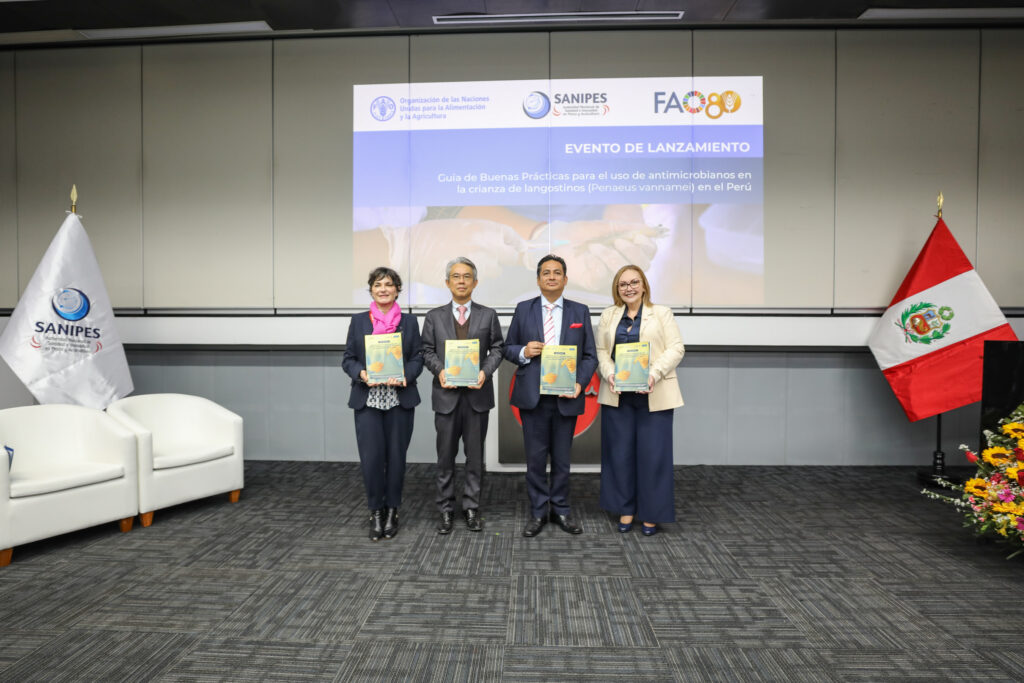El Ministerio de la Producción de Perú (Produce), a través de la Autoridad Nacional de Sanidad e Inocuidad en Pesca y Acuicultura (Sanipes), y la Organización de las Naciones Unidas para la Alimentación y la Agricultura (FAO), con el apoyo del Gobierno de la República de Corea, presentaron la Guía de Buenas Prácticas para el Uso de Antimicrobianos en la Crianza de Langostinos (Penaeus vannamei).