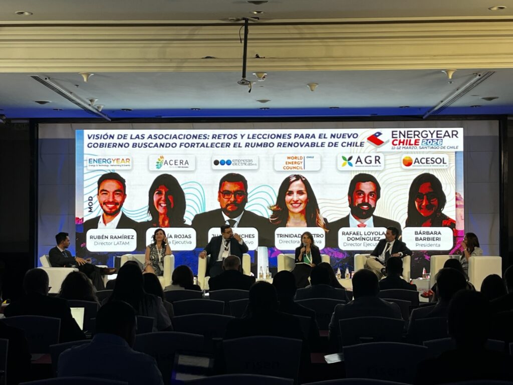 Revista ELECTRICIDAD fue parte del evento, que contempló la realización del conversatorio “Visión de las asociaciones: Retos y lecciones para el nuevo gobierno buscando fortalecer el rumbo renovable de Chile”, instancia que contó con la participación de Bárbara Barbieri, presidenta de Acesol; Ana Lía Rojas, directora ejecutiva de Acera; Rafael Loyola, director ejecutivo de AGR; Trinidad Castro, directora ejecutiva de WEC Chile; y Juan Meriches, director ejecutivo de Empresas Eléctricas.
