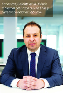 “Nuestra propuesta de valor es entregar soluciones inteÂgrales a la minerÃa. En el fonÂdo, se trata de una evolución en las prestaciones que tradiÂcionalmente brindábamos al mercado. Hoy cubrimos el ciclo completo tanto en proyectos de ingenierÃa y conÂstrucción, como en integridad de activos. Nuestra cercanÃa con los clientes, que son el centro de nuestra compañÃa, nos permite diseñar soluÂciones conjuntas para responder a sus desafÃos y necesidades†destaca Carlos Paz, Director de la División Industrial de SGS y Gerente General de SGS SIGA.
