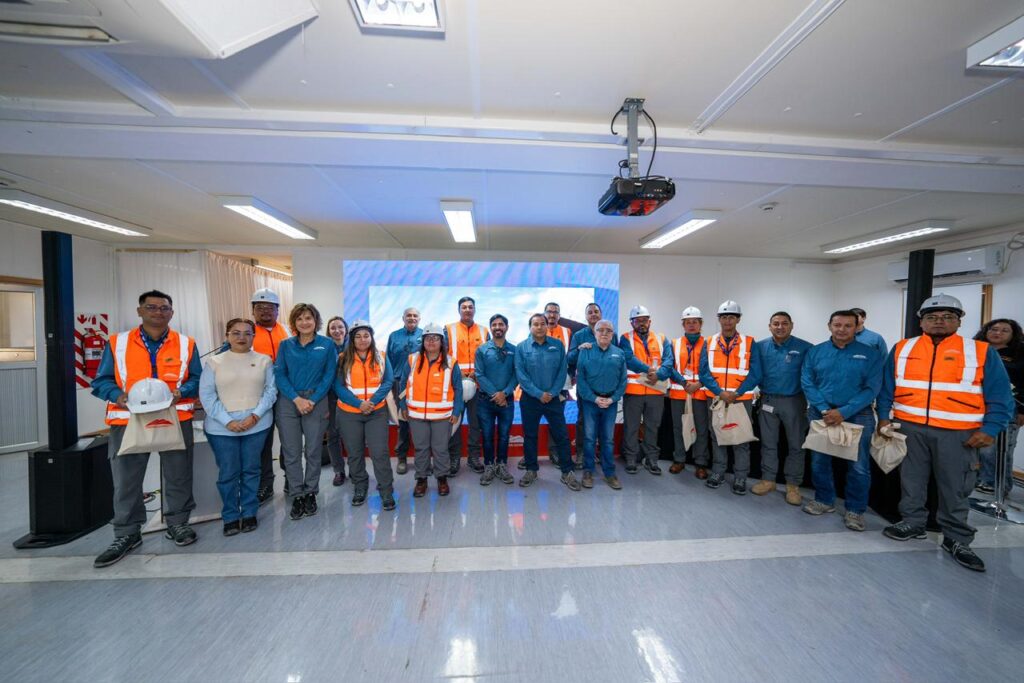 La ceremonia incluyó un hito de investidura, donde los nuevos trabajadores fueron recibidos por los lÃderes de Sierra Gorda SCM y sus nuevos colegas.